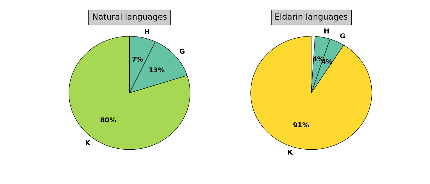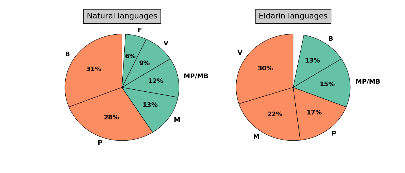 Before proceeding, let us look at some statistics and compare the Elvish data with the natural languages (excluding Cohen’s data). For the first consonant, one finds the following distributions: